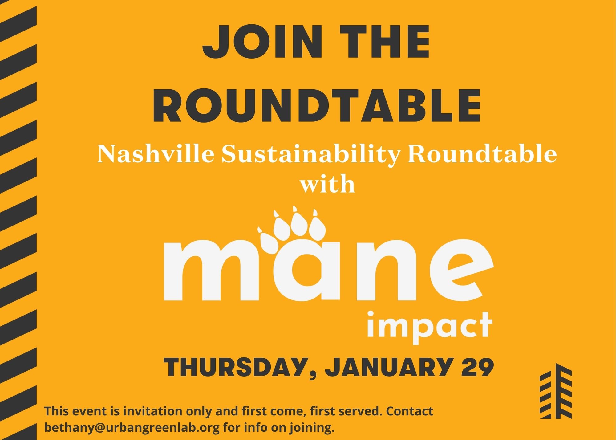 Join us for the Nashville Sustainability Roundtable on Thursday, January 29th, hosted by Urban Green Lab in partnership with Mane Impact!