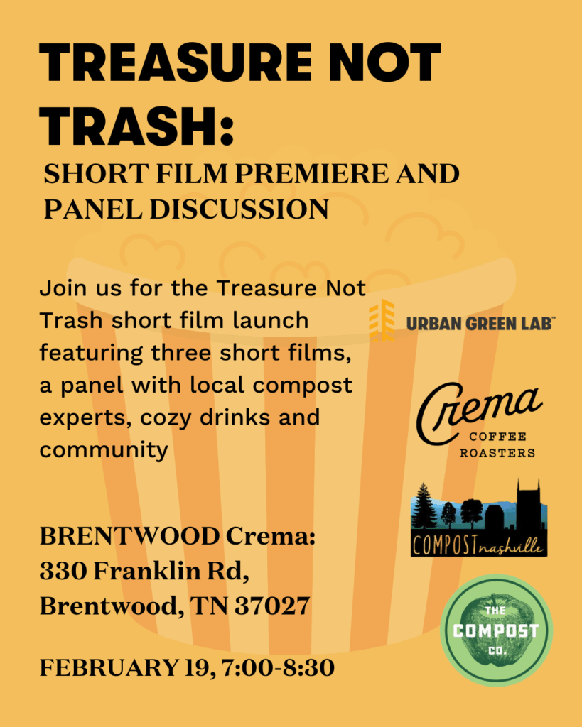 Join us for the Compost Short Films Launch: Treasure Not Trash, an engaging video series exploring the food journey, why preventing food waste matters, and how individuals and businesses here in Nashville can take action.